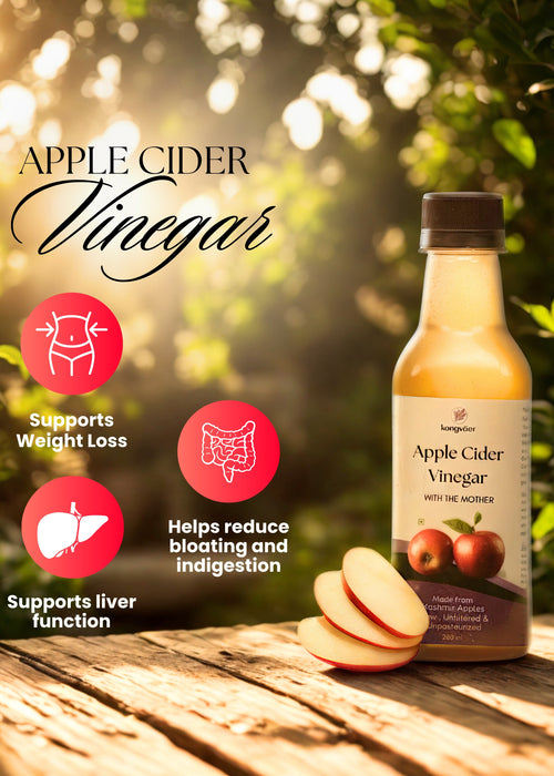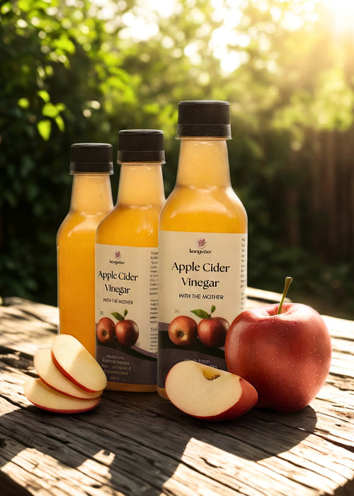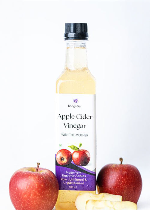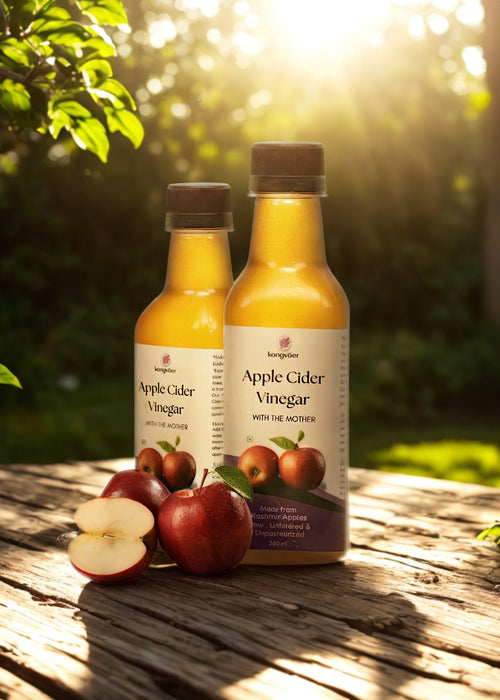 Discover the purity of Kongvaer Apple Cider Vinegar, crafted from handpicked Himalayan apples through natural fermentation. Unfiltered and unpasteurized, it retains the beneficial “mother” culture, rich in enzymes and probiotics that support digestion, boost immunity, and promote healthy skin and hair. Whether taken as a wellness tonic, added to your salad dressings, or used for detox, our apple cider vinegar brings holistic health benefits in every drop. Experience the difference of nature's finest ferment.