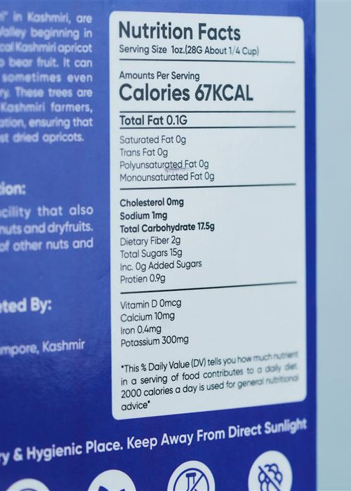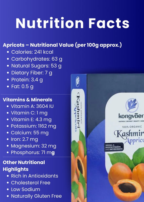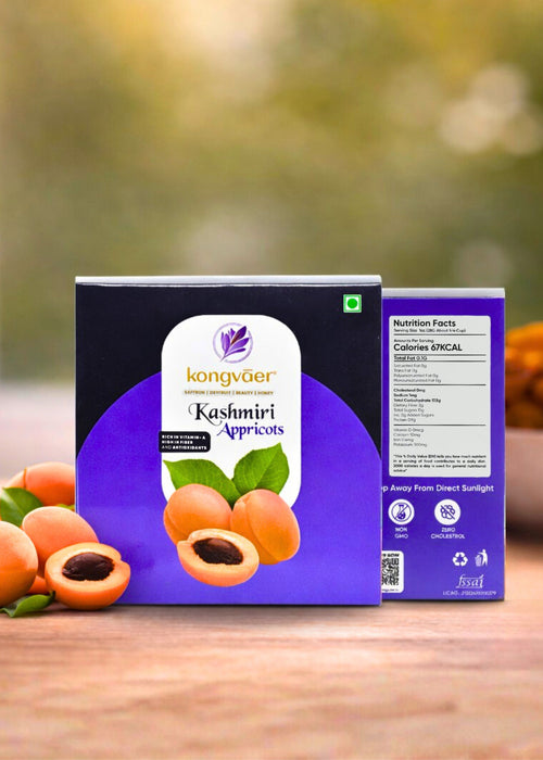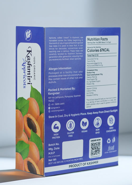 Sourced from the pristine, high-altitude orchards of Ladakh, Kongvaer Dried Apricots are a testament to nature's purity. Carefully handpicked at peak ripeness, these apricots are gently sun-dried to preserve their natural sweetness, vibrant color, and essential nutrients. Each piece is a burst of tangy delight, offering sweet and tart flavors. Our apricots are a versatile treat, perfect for snacking, enhancing your culinary creations, or as a wholesome addition to a balanced diet. Whether enjoyed on their own or incorporated into your favorite recipes, Kongvaer Dried Apricots deliver an unparalleled taste experience that reflects the pristine beauty of their origin. Savor the goodness of Ladakh in every bite.