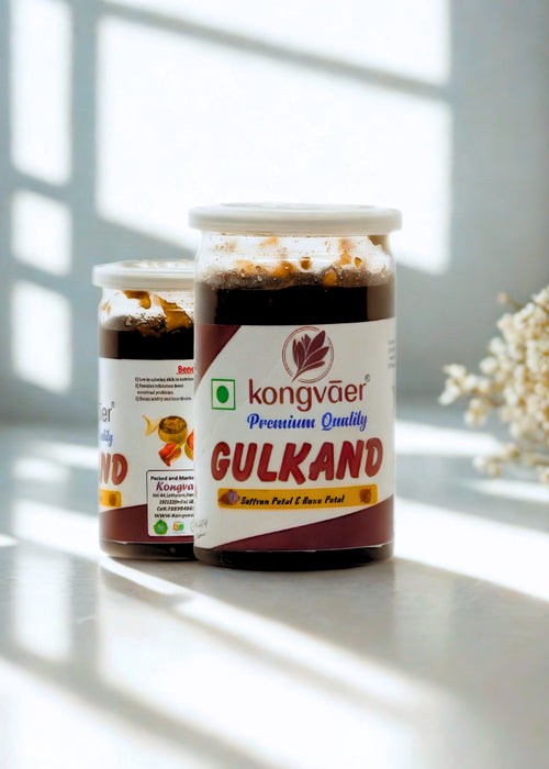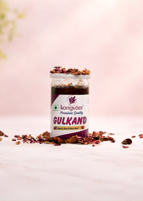 Our Gulkand is made from the finest Kashmiri rose petals, organic Kashmiri honey, and the rare Kashmiri saffron, creating a delicacy rich in nutrients and antioxidants. The fragrant rose petals are carefully selected for their soothing and digestive properties. The organic Kashmiri honey not only acts as a natural sweetener but also enhances the health benefits with its antimicrobial and anti-inflammatory properties. The inclusion of Kashmiri saffron, is known for its ability to improve mood and relieve menstrual discomfort. Together, these ingredients make our Gulkand a powerful remedy for constipation, acidity, and heartburn, while promoting overall well-being.