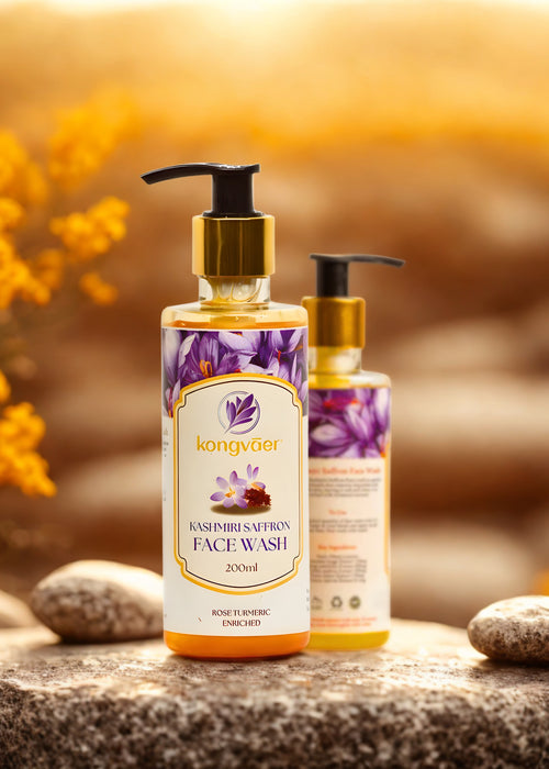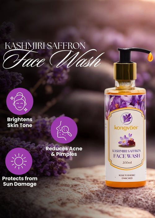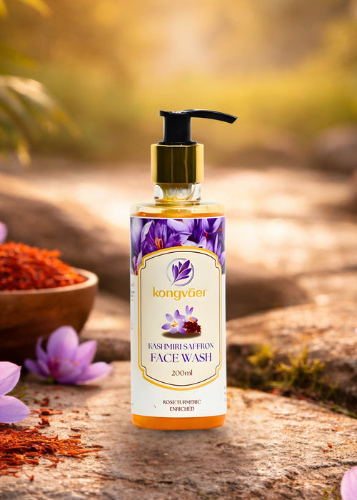 Indulge in a daily spa-like experience with Kongvaer Face Wash, made with the natural goodness of rose and turmeric. This mild cleanser gently purifies and rejuvenates your skin, revealing a radiant and refreshed complexion. The soothing properties of rose work harmoniously with the antioxidant-rich turmeric to nourish and revitalize your skin, making each wash a moment of pure bliss. Elevate your skincare routine with our Saffron Face wash, where every day begins and ends with the promise of healthy, glowing skin.