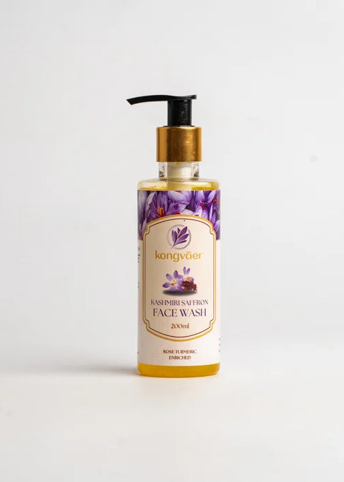 Indulge in a daily spa-like experience with Kongvaer Face Wash, made with the natural goodness of rose and turmeric. This mild cleanser gently purifies and rejuvenates your skin, revealing a radiant and refreshed complexion. The soothing properties of rose work harmoniously with the antioxidant-rich turmeric to nourish and revitalize your skin, making each wash a moment of pure bliss. Elevate your skincare routine with our Saffron Face wash, where every day begins and ends with the promise of healthy, glowing skin.