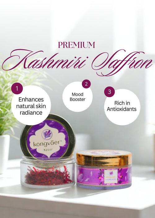 Kongvaer brings you 100% pure, hand-picked Mongra Saffron from the legendary fields of Pampore, Kashmir. Unlike standard market saffron, we offer only the dark red stigmas—rich in color, potent in aroma, and lab-tested for purity.