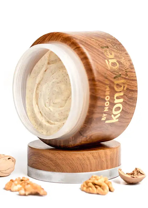 Cleanses pores and reduces blackheads, whiteheads and acne-causing elements. By clearing away dead skin cells, it softens and plumps the skin, leaving it refreshed and glowing. Revitalize your skin with our advanced formula of Kongvaer Walnut Scrub that cleanses pores and effectively reduces blackheads, whiteheads, and acne-causing elements. By gently clearing away dead skin cells, Kongvaer Walnut Scrub not only prevents future breakouts but also softens and plumps your skin, leaving it refreshed and glowing. Experience a smoother, more radiant complexion as our treatment works to rejuvenate and enhance your natural beauty. Say goodbye to dull, congested skin and hello to a clear, luminous glow.
