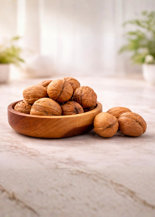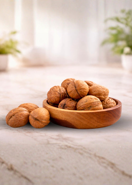 Kongaver Walnuts with Shell are sourced from the pristine farms of Kashmir, ensuring you get 100% natural, fresh, and unprocessed walnuts. Encased in their natural hard shell, these walnuts retain their rich taste, crunch, and nutritional value. They are packed with omega-3 fatty acids, essential vitamins, and powerful antioxidants, making them an excellent choice for a healthy and delicious snack. Buying walnuts with shell not only preserves their freshness for a longer time but also ensures that you enjoy pure, unprocessed goodness. Now, you can get the best-quality Kashmiri walnuts with an easy online purchase from Kongaver!